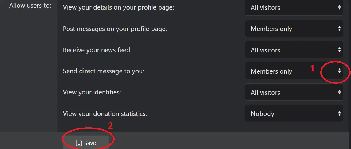If you want to change your setting to allow DMs, you can go to this link and go down to the bottom and change the setting...
