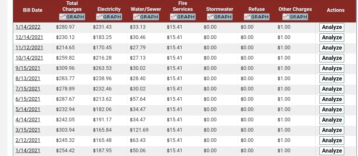 Must just be me? Are you the idiot trying to compare a ******* water bill to a gas bill? And it must be me???Must just be you. Here's my electric/water for the past year. Pretty normal stuff.