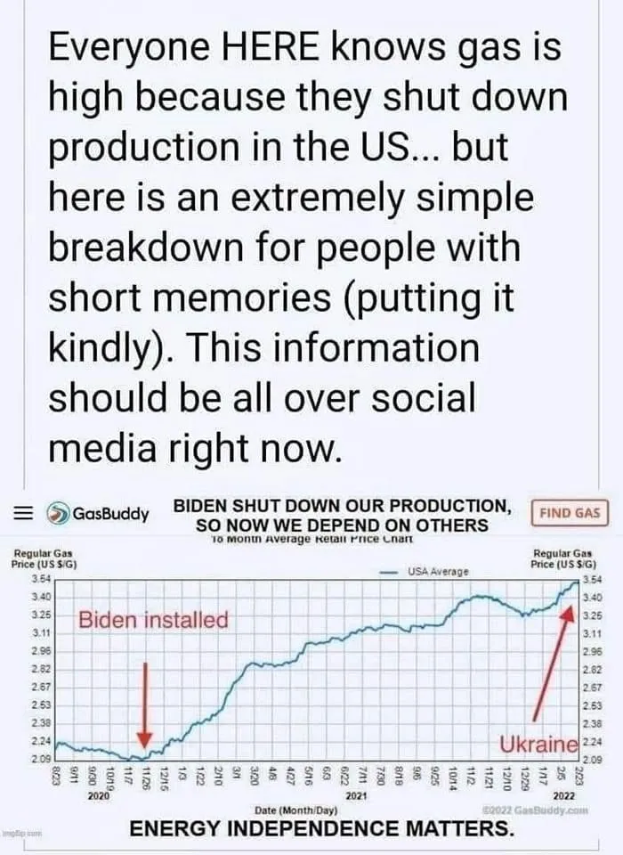Let's see your proof and no fake newsWhy does your price chart start in the middle of the pandemic when there was a glut of oil on the market? If this was such a good thing why did the Trumpyone demand cuts in oil production in 2020 to raise prices. The companies and countries that cut production still haven't returned to their prior production levels.