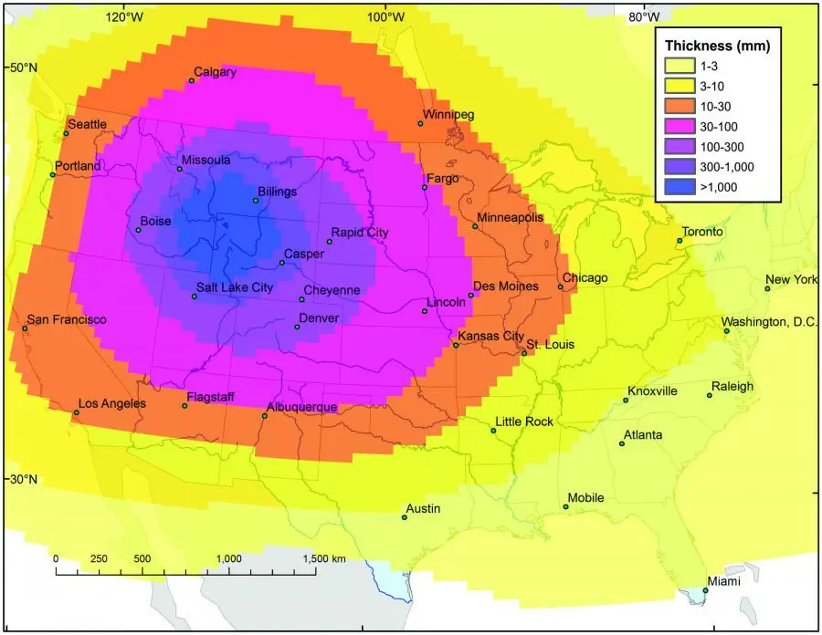 What about two years of volcanic winter? If the blast is that big, the amount of dust and debris in the atmosphere will block sunlight, etc. keep crops from growing, etc. A big volcanic explosion in 1815 in Indonesia caused a couple of very crummy years in the US. It snowed in Maine in June and July. The winters were so cold that even Mainers were freezing to death in their own yards.Sounds like an ominous sign indeed.