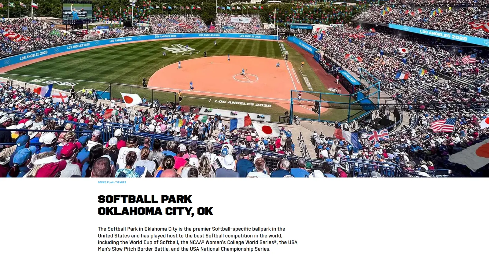 Anyway, the LA 28 games are in 1,433 days. Sweet. According to Forbes Magzine columnist Jack MacGruder, Softball is making a return to the Olympics. That alone would likely mean I could die a happy person. LOL. It is bizarre that it has been a sport, then wasn't a sport (allegedly because of US domination of the sport) then was reinstated in 2020 but not in 2024. UGH!!!! I'm sure this is a typo (at least I hope it is) but the current venue for the Softball events on the LA28 website is...Oklahoma City. Yes....OKC. Apparently they are serious about it.