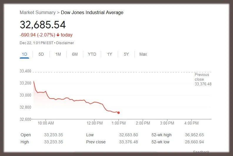 The Dow Jones Industrial Average declined 603 points Thursday, or 2%, the S&P 500 was down 2.5% and the Nasdaq Composite fell 3.3%. Currently, all three of the major indexes are on pace to end the week with declines."