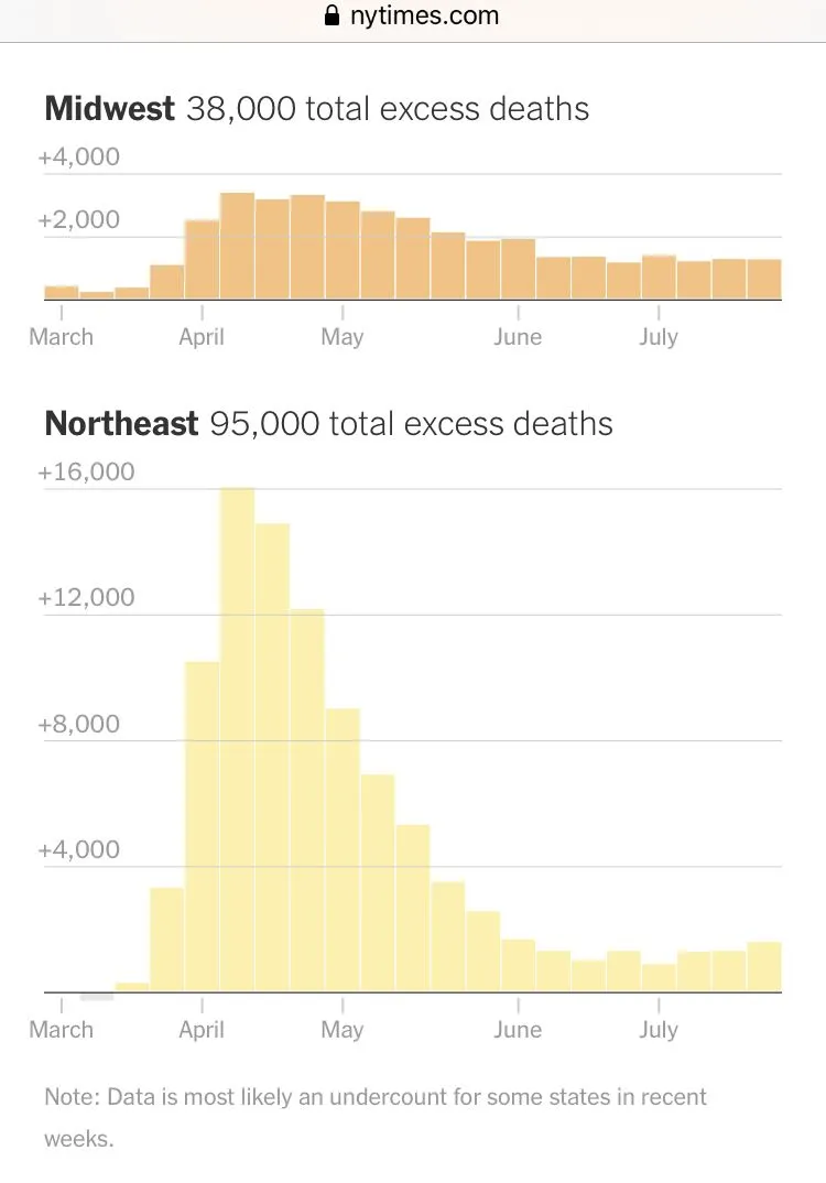 225,000 more people have died this year than average. This is known as "excess mortality". Covid-19 numbers are undercounted, not over. And by more than. 50,000.Human beings die every second from many reasons in America and in the rest of the world!