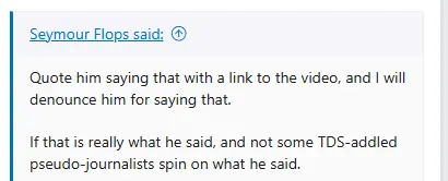 To remind you of what was said:Are you now going to be honest to your words and denounce him?
