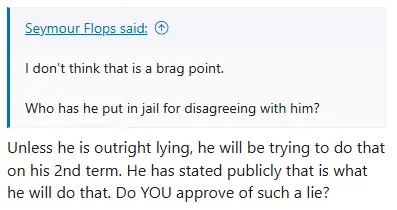 My honest words were that I would denounce him if he said that he would put people in jail for disagreeing with him.