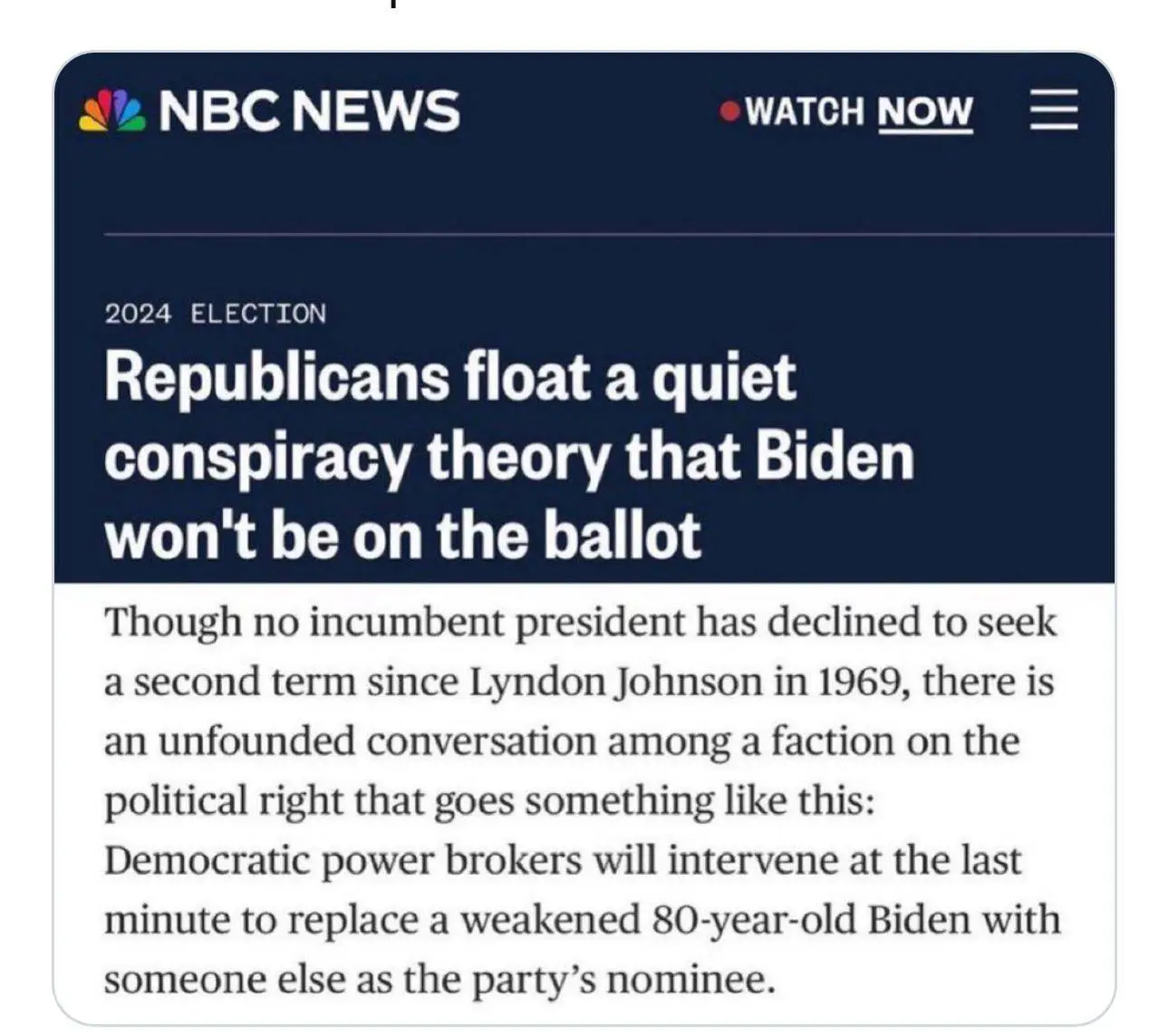 Though no incumbent president has declined to seek a second term since Lyndon Johnson in 1969, there is an unfounded conversation among a faction on the political right that goes something like this: Democratic power brokers will intervene at the last minute to replace a weakened 80-year-old Biden with someone else as the party’s nominee....