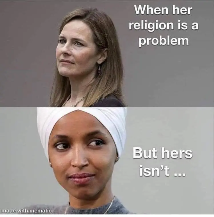 So ACB's religion is a threat to America, but Feinstein getting caught facilitating Chinese espionage out of her office for DECADES was not even worthy of an investigation?