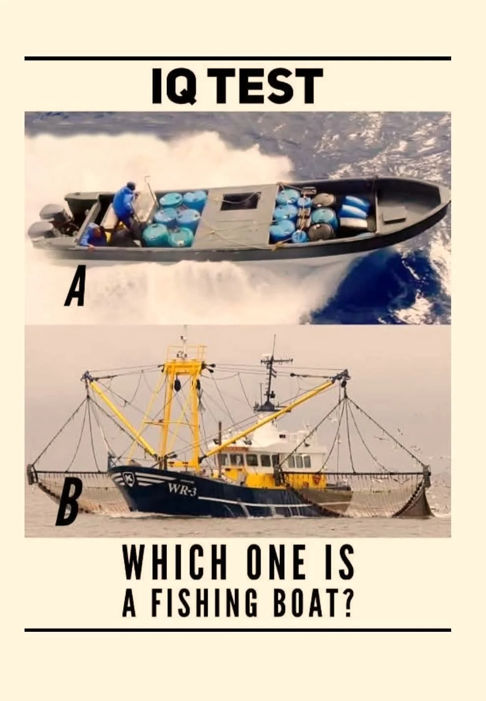 Apparently a drug boat only needs one guy… not eleven