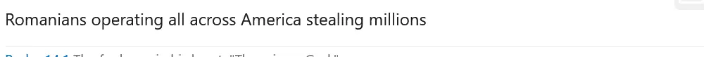 Thread Locked. This partial sentence "Romanians operating all across America stealing millions" does not meet USMB Site Guidelines and Regulations for posting.