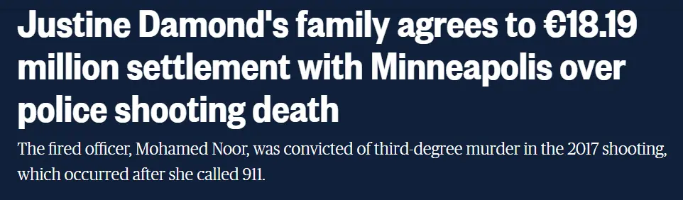 They never made her (Damond Family) fight for the €18.19 million. They just announced it the day after he (Mohammad Noor) was convicted. Her family didn't have to sue or settle for it. It was just given away.