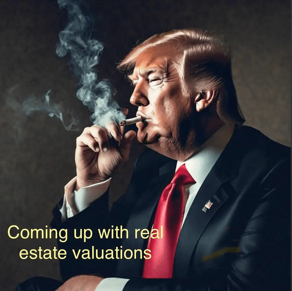 Banks don't take landowners' word for the value of their property. Who did the appraisal and why are they not being grilled in court? I know it's all trendy and stuff and everybody's wetting themselves because TRUMP! is under fire, but this is ridiculous.