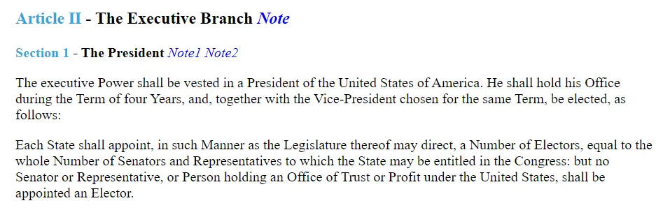 Now let's look at what you probably were referencing which Article II, Section 4, Clause 1.