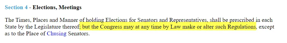 And it specifically states that or federal election Congress CAN set law for such elections..