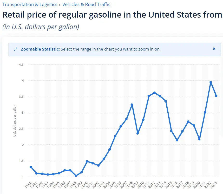 In 2005 when I was four I remember in Upstate South Carolina gas was around $1.50 per gallon at one specific Walmart gas station. Prices varied across town that was up to several cents more expensive. And that is the national average.