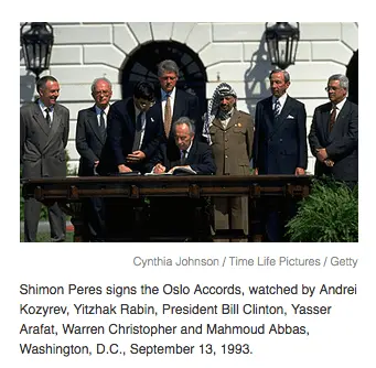 While the print does not change on the Oslo Accords, the faces that were involved in those proceeding change, except for one, have faded away.