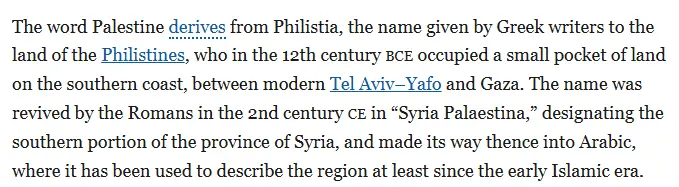 No, no it doesn't. The fact that you think it does bespeaks a very deep ignorance.The name stems from the people who dwelled in the region named "Philistines" who descended from the people before that known as "Canaanites".