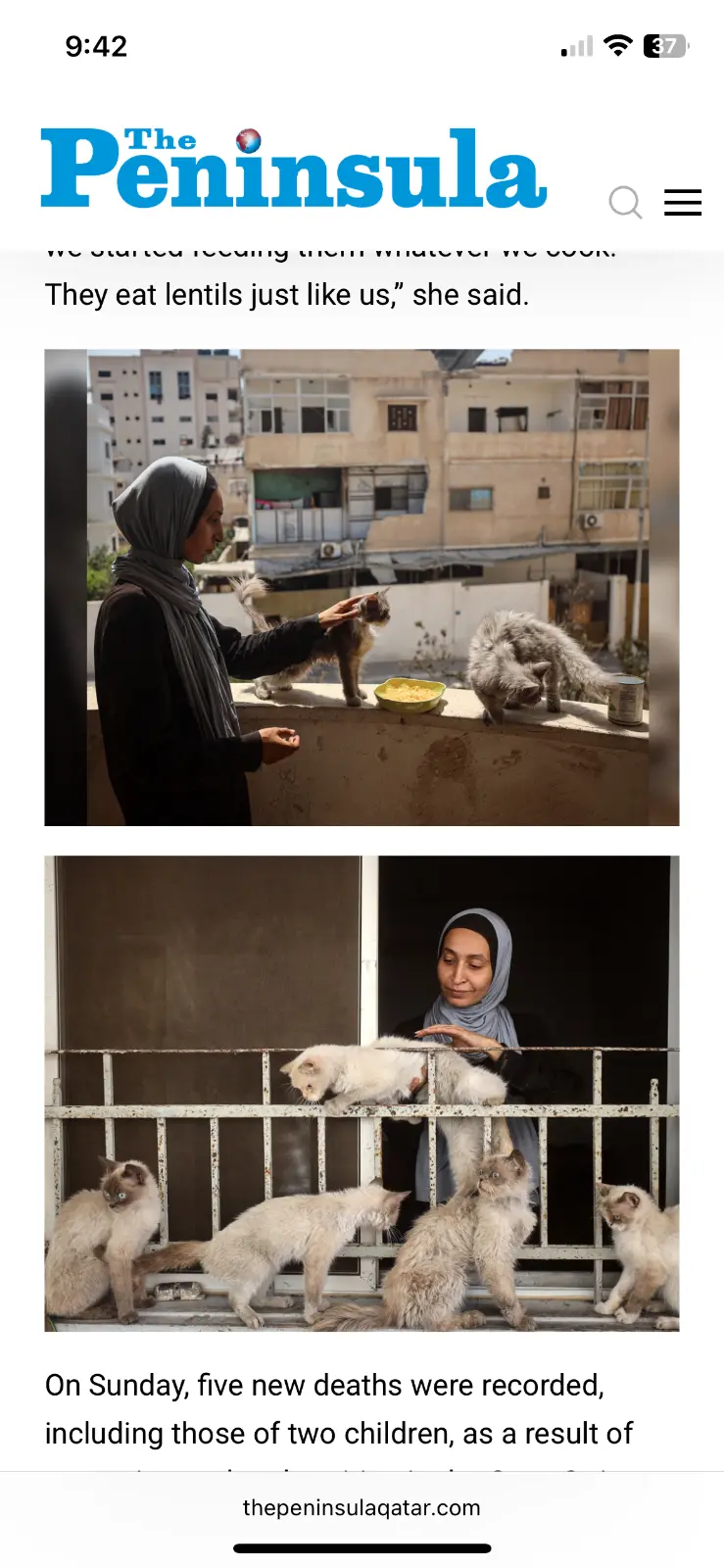Gaza City: Rania Murad, a Palestinian resident of Gaza City, is forced to feed her pet cats boiled lentils and canned peas as the dire humanitarian cr...
