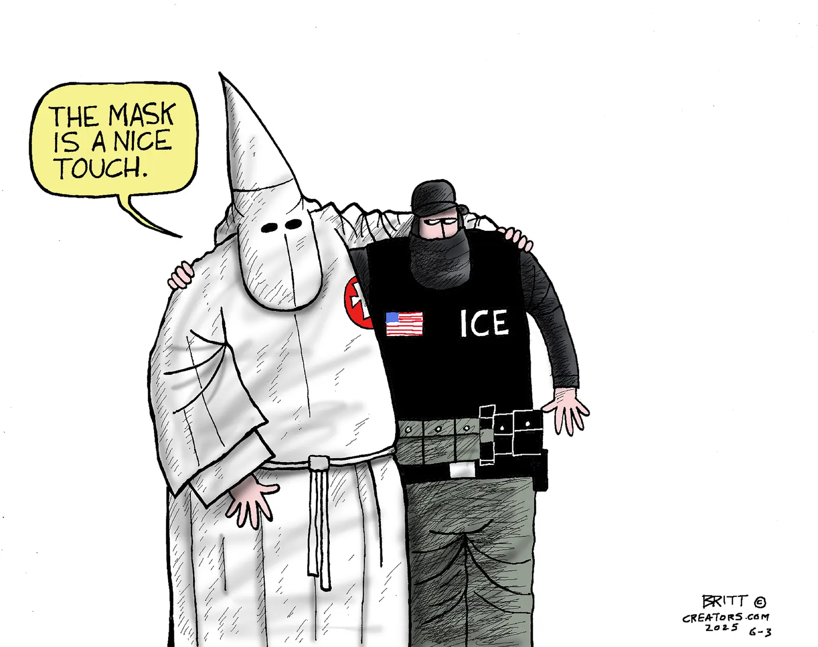 That is a fantasy.I'd wear a mask too if it was my job to round up all those diseased illegal aliens the Democrats invited in during the Biden administration. And let's not forget about Democrat politicians and their unhinged party of doxers. Gotta be careful when dealing with radicals.