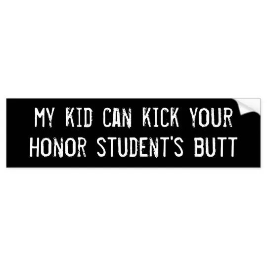 Yep, its a sarcastic joke.I think the guy played you....it's sarcasm. People who drive around with proud parent of honor students folk...nobody cares....really. why put a bumper sticker about it? Btw employers have never had it better or easier finding good productive workers.