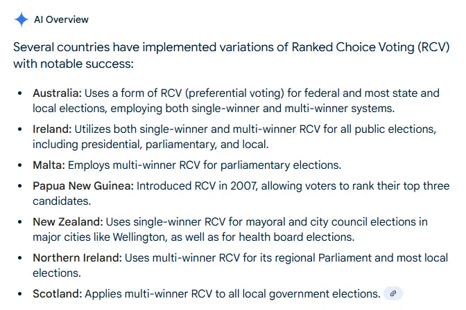 But who is making these proposals and are "the parties" even hearing them? Which party has argued most strenuously against RCV, etc.? My observation is that they don't even mention it.