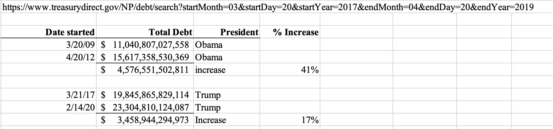 In approximately the same period of time Trump increased national debt 17% Versus Obama 41%.