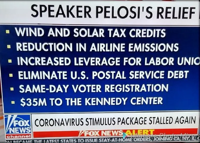 It's Christmas for the Democrats! Go Nancy. No wonder there isn't a woman President. She bout to give the Republicans and the President a heart attack. Ka ching, Ka ching. Can't wait to see what crumbs the GOP settles with $1200 or something else?View attachment 314912
