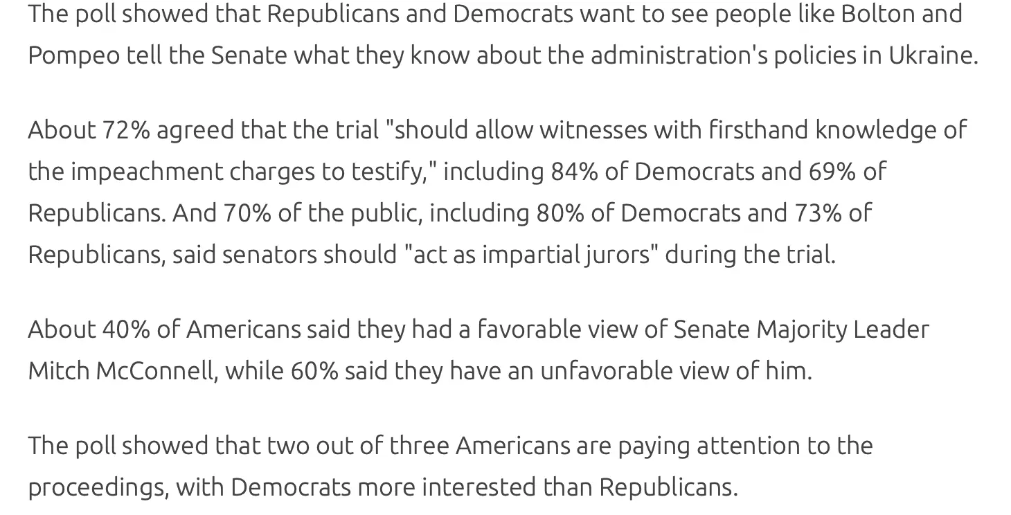 POLL-Let them speak: Most Americans want witnesses in Trump impeachment trial