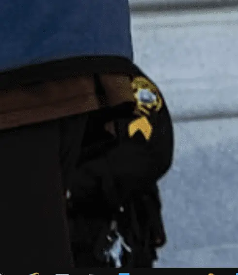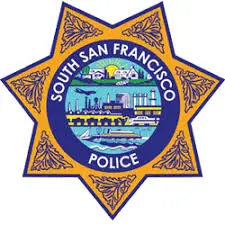 That's a cop behind him in the picture.South San Francisco Police Department emblem and stripes???