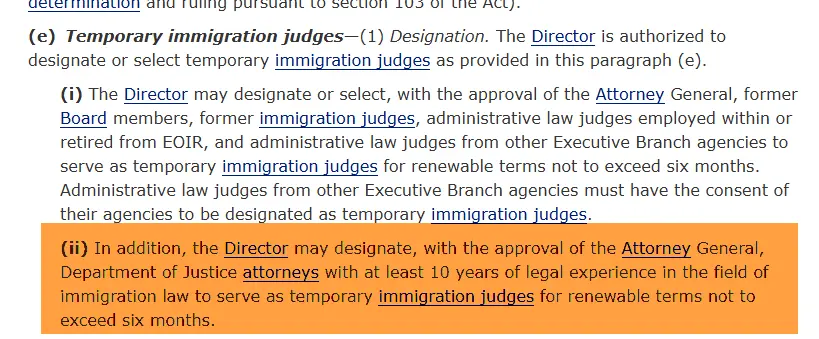 Just to point out. Congress has established requirements for Temporary Immigration Judges.
