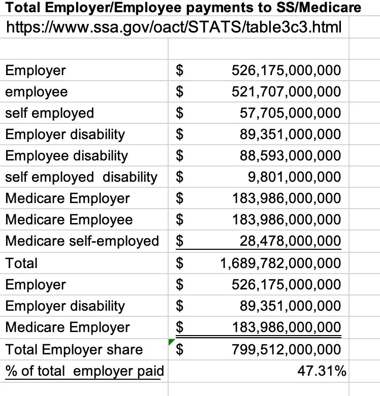 Do you ignorant people that work for one of those employers' that MATCH exactly what you pay to SS/Medicare KNOW THIS?