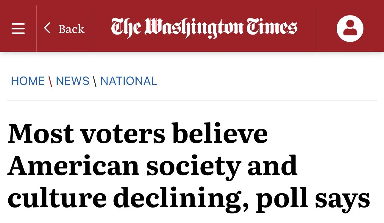 A new poll finds that most U.S. likely voters believe American society and culture is in decline — including large majorities of self-identified Democrats, Republicans and independents.