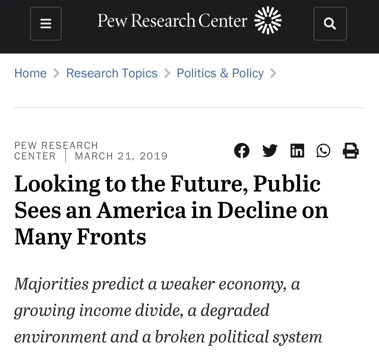 When Americans peer 30 years into the future, they see a country in decline economically, politically and on the world stage.
