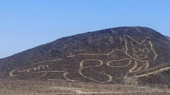 One of the more recent discoveries, announced in October 2020, was a large cat figure on a hillside overlooking the desert. It dates to around 200–100 BC and measures about 37 meters from head to tail.