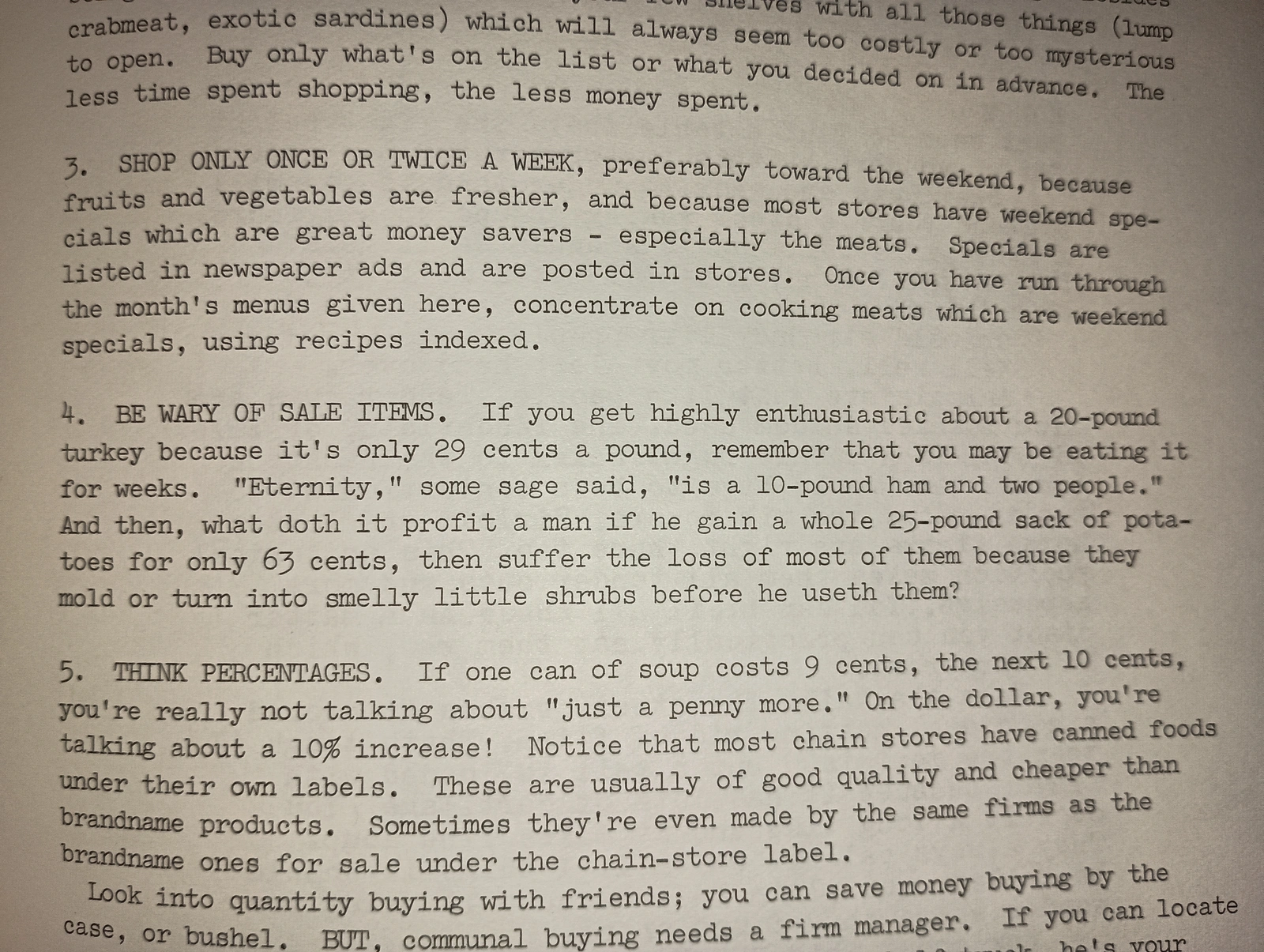 "If you buy a 25 pound bag of potatoes for 63¢..