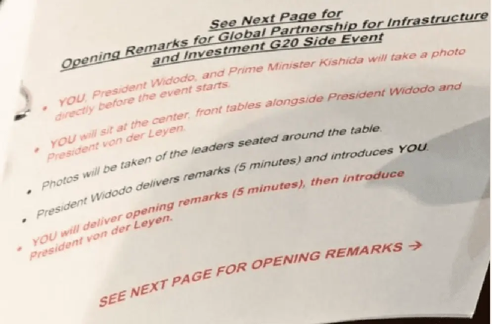 OMG. An itinerary. The horror. It's bad enough we let our politicians get away with tan suits and dijon mustard but now this?Pictures from the G20 Summit, 11/15/2022...