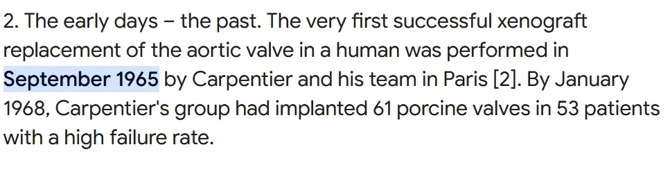 My neighbor had a pig valve because of mitral regurgitation. She had it installed in the early 1970's. She died last week in her mid 70's. Not from the valve, but from hereditary blood platelet issues.They've used pig valves in human hearts since like 1965.