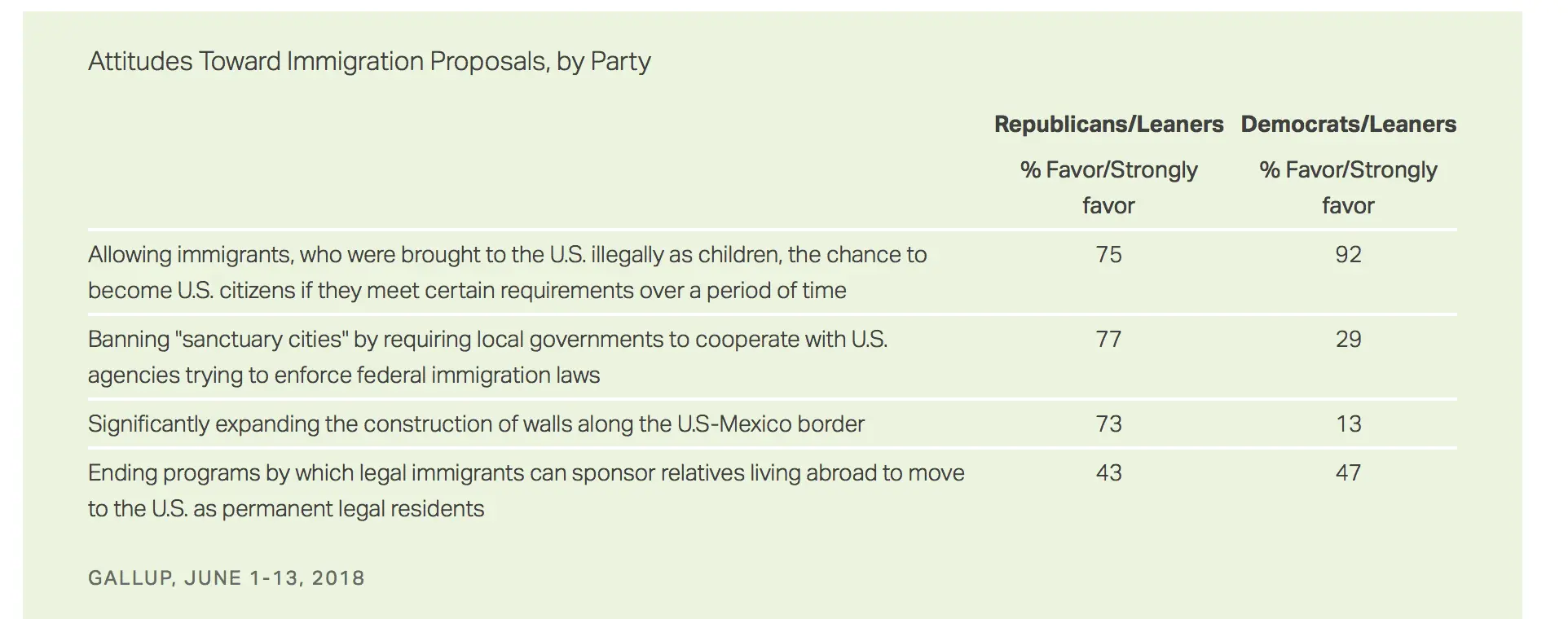 GOP 73% favor expanding the wall while 87% of Democrats don't favor.