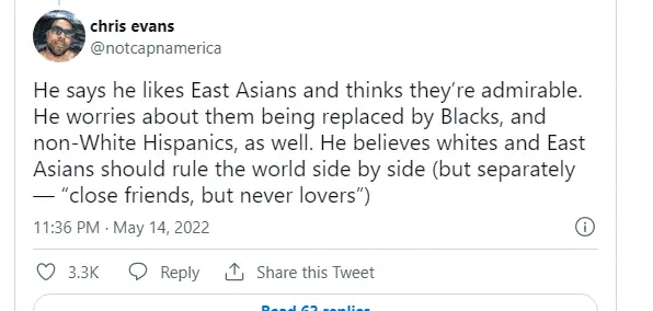 These white supremacists always love Asians. That's a consistent pattern. Of course he likes East Asian. Same as that coconut head ass ***** (Dylan Roof) who shot up innocent church members who allowed him into their space. There’s a PATTERN HERE.