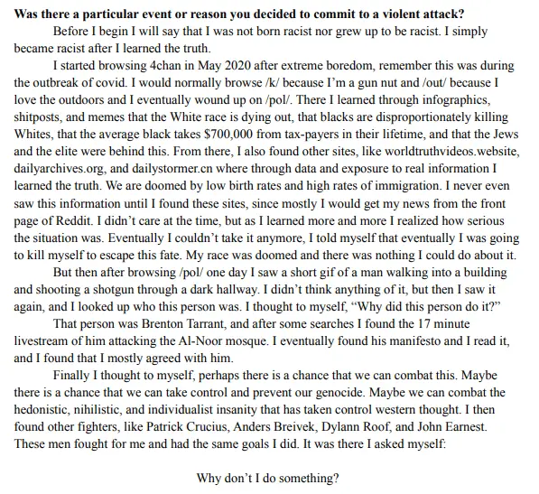 Looks like he was radicalized on 4chan.How is all this ideological squabbling going to solve anything? What made this person?