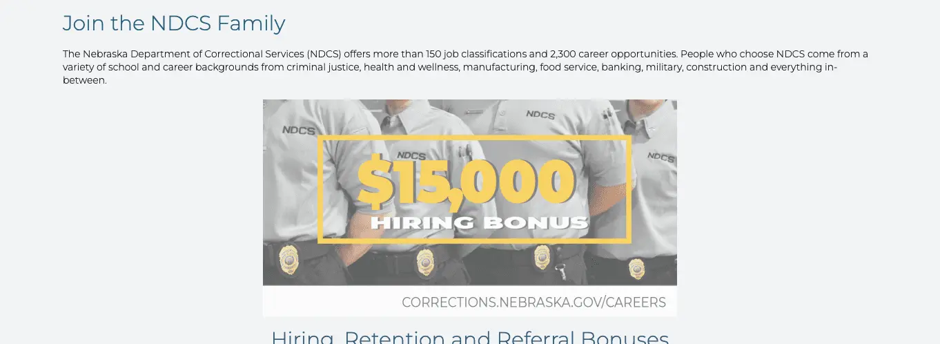 Nebraska (not a huge amount of crime there right????) is offering people $15K sign on bonuses.