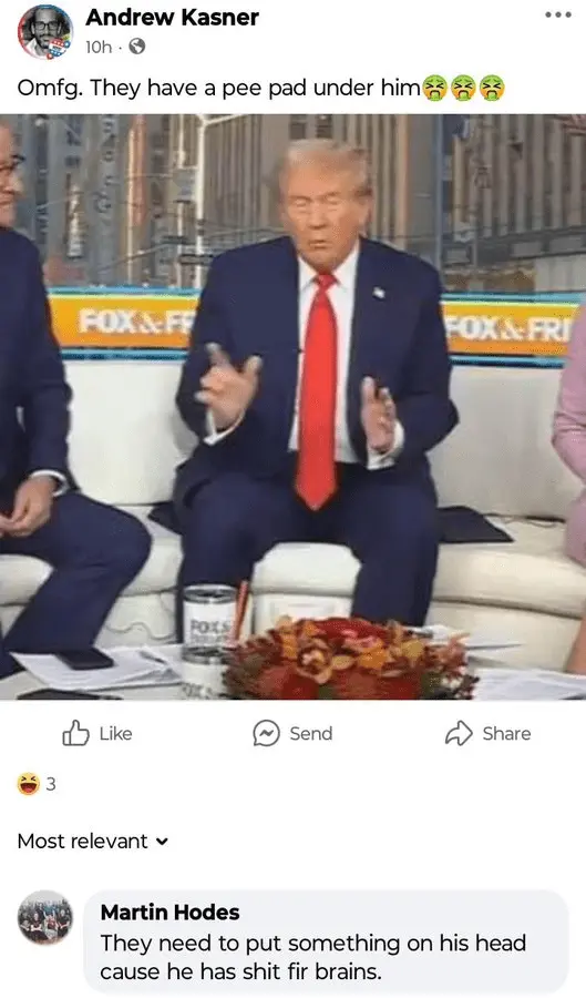 No, you love your agenda, and that's why you chose a real dementia patient to lead your dumb ace into thr highest inflation of the 21st century, war's and rumors of war's, an illegal invasion for political purposes, and all in hopes to somehow protect your agenda, fake prosecutions of your political opponent's, fake racism charges and/or race baiting at the drop of a hat, lies and rumors caused by lies, fake qualifications, wokism, political correctness on steroids, and redistribution courtesy of the dumb ace wealthy class. You know, the one's who are being attacked and intimidated by a bunch of idiot's that want the job if anyone slips.I love my country. You love a 78-Year Old Man who shits in his diapers and walks out on interviews.