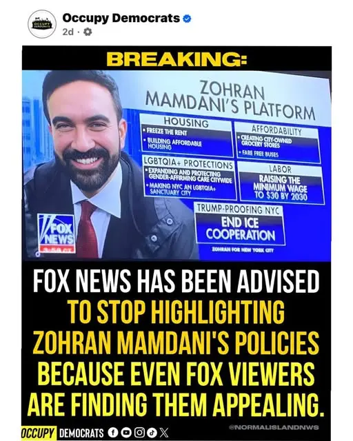 It’s hard to believe, but Zohran Mamdani has now surpassed Joe Biden as “the best thing that has ever happened to republicans”. If he actually gets in as mayor of NY, it will be the final nail in the coffin of the Democratic Party, they are almost guaranteed to gain even more seats in both the House and Senate in 2026. It will literally be political suicide for the party.