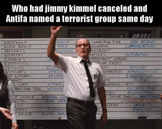 Antifa has been named a terrorist group now ?? The Jimmy Kimmel show has probably been one of the the most overrated leftist sycophant gatherings/shows for the mentally impaired these days....IMHO.
