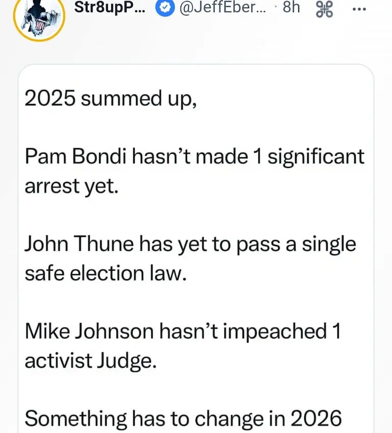 Dems biggest problem is economic numbers getting better which is happening. They'll say it's the end of the world and poo poo everything.Makes one wonder what 2026 is going to be like ?