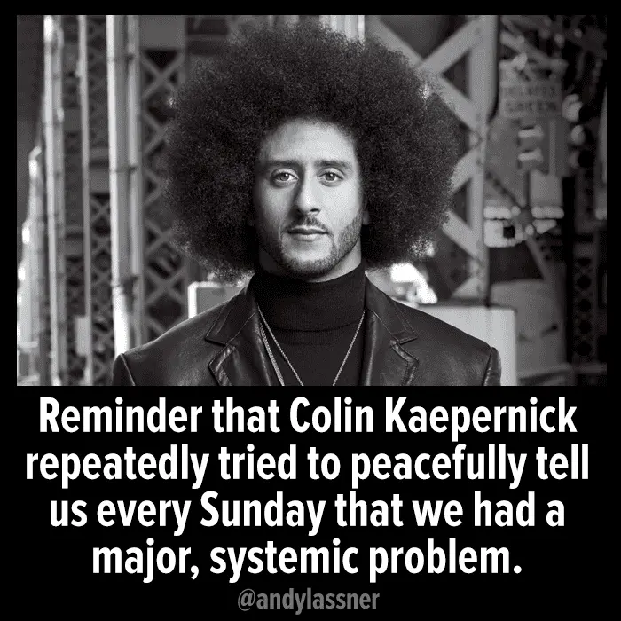 But he did it by kneeling during the Anthem instead of before, showing our systemic problem is disrespect not Racism, as racism itself is a form of disrespect as is generalizing all police, you yourself show disrespect in hyper form.