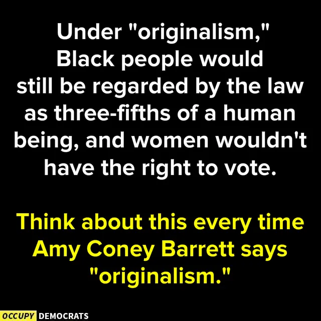 That's not what it means at all. The Constitution has changed over time. Ever hear of Amendments? Originalism means interpreting the current Constitution based upon the wording at the time it was adopted.