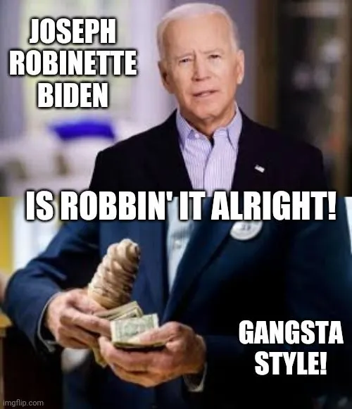 That is so incredibly humorous his parents must have known that The moment he came Into this world he would live up to his name James ROBBING it Biden...Not only is he trying to rob the presidency from the Don( of theAmerican people) but he his been robbing it all the way along by lining his own pockets in his 47 years of public service to the American people and giving absolutely nothing in return and now he wants to be king of the castle to make one last big score. At least the original ” RobinHOOD stole from the rich and gave to the poor Or so the story goes.. So humorous as even the sheriff of Nottingham has been powerless to stop him so far after all these years and he has a HUNTER ( as in Biden Jr) travelling through the WOODS(there’s a play on words...lol..) doing all his dirty work for him while his hands look clean to Johnny public....