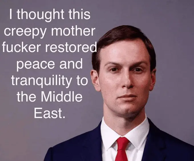 Oops another meme backfires, you and some beyond the grave voters voted the administration out, and can you even name the person in the WH now dealing with Middle east peace deals-(cue the Jeopardy theme song)