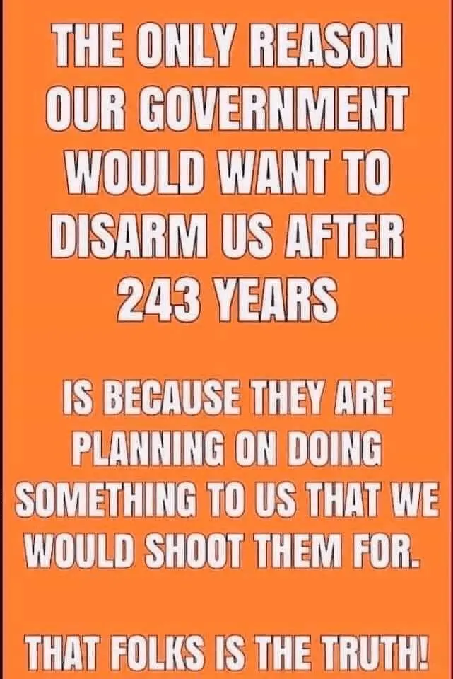 You tell me, why after all these years why they want to disarm the country. Is it because of people like you that are afraid of the real people protecting themselves?What’s their plan?