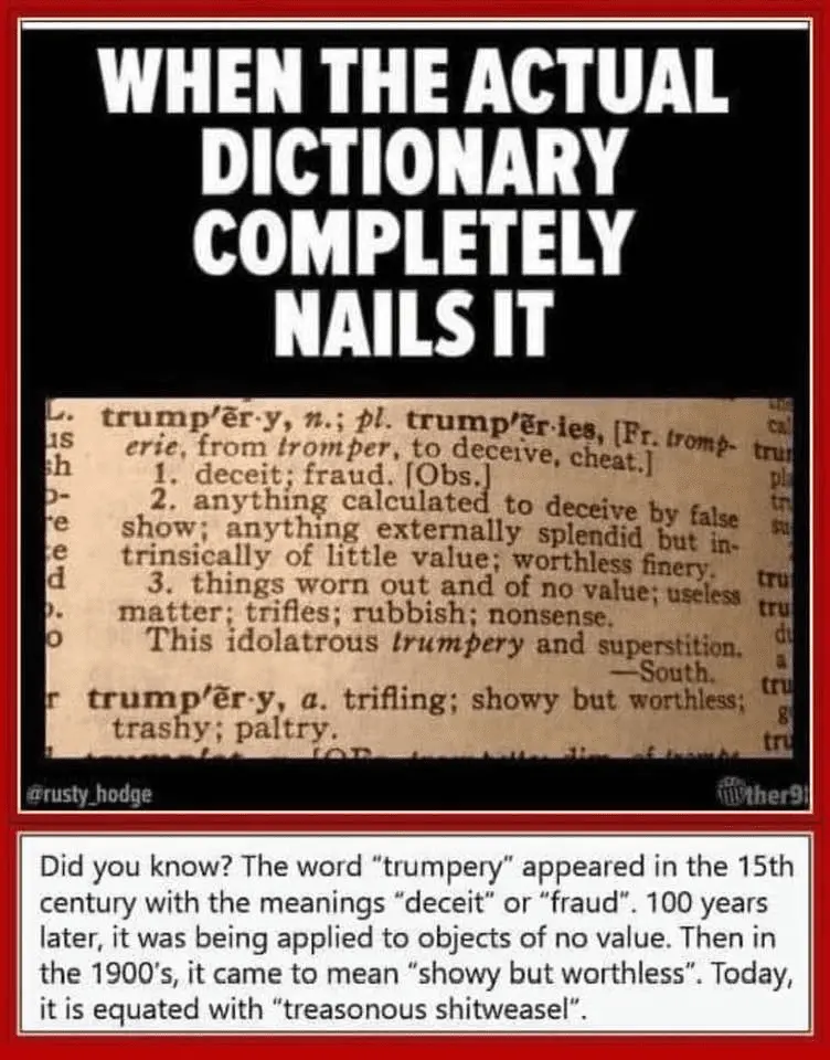 Your grasp of the obvious is uncanny.Tromper/Trumpery is not Trump.